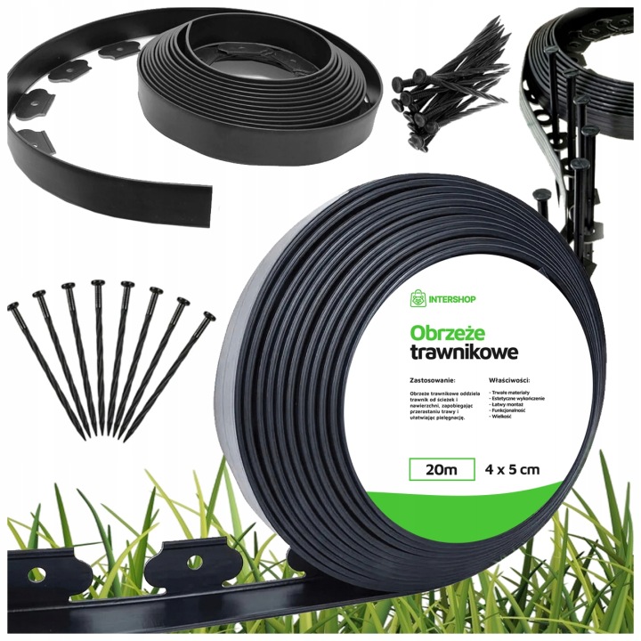 ✅ Wielkość: Zestaw obejmuje 20 metrów obrzeża trawnikowego o szerokości 5 cm oraz wysokości 4 cm, co umożliwia elastyczne dostosowanie do różnych obszarów ogrodu. Dodatkowo do zestawu dołączone jest 30 szt kotw mocujących.
