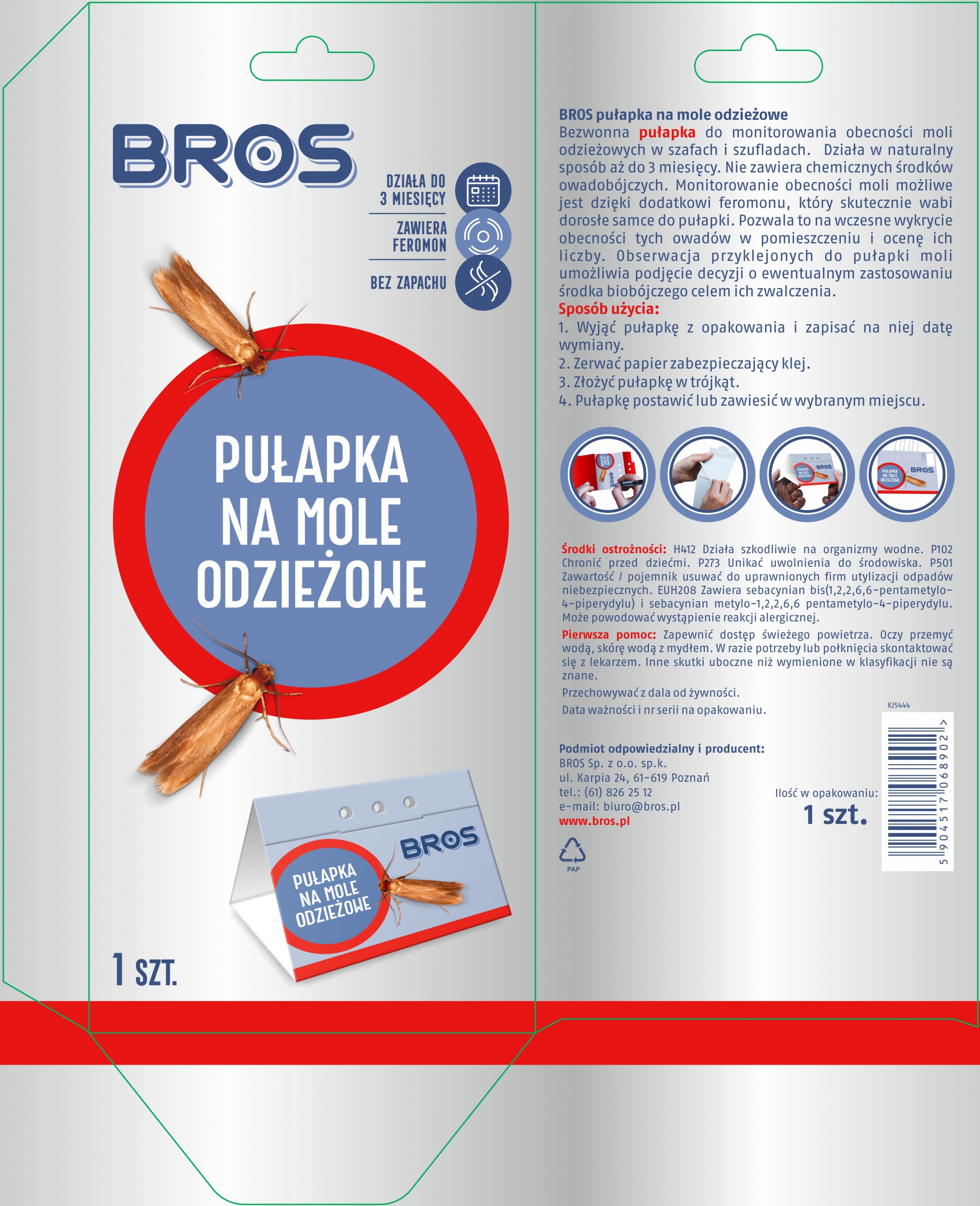 Działa w naturalny sposób aż do 3 miesięcy. Nie zawiera chemicznych środków owadobójczych. Monitorowanie obecności moli możliwe jest dzięki dodatkowi feromonu, który skutecznie wabi dorosłe samce do pułapki. Pozwala to na wczesne wykrycie obecności tych owadów w pomieszczeniu i ocenę ich liczby.