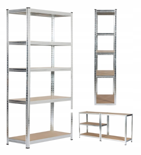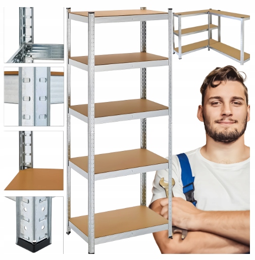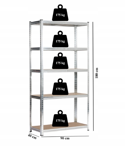 Regał składa się z 5 półek, na których możesz ułożyć produkty, kartony, czy też urządzenia maksymalnie obciążając każdą półkę aż do 175 kg.