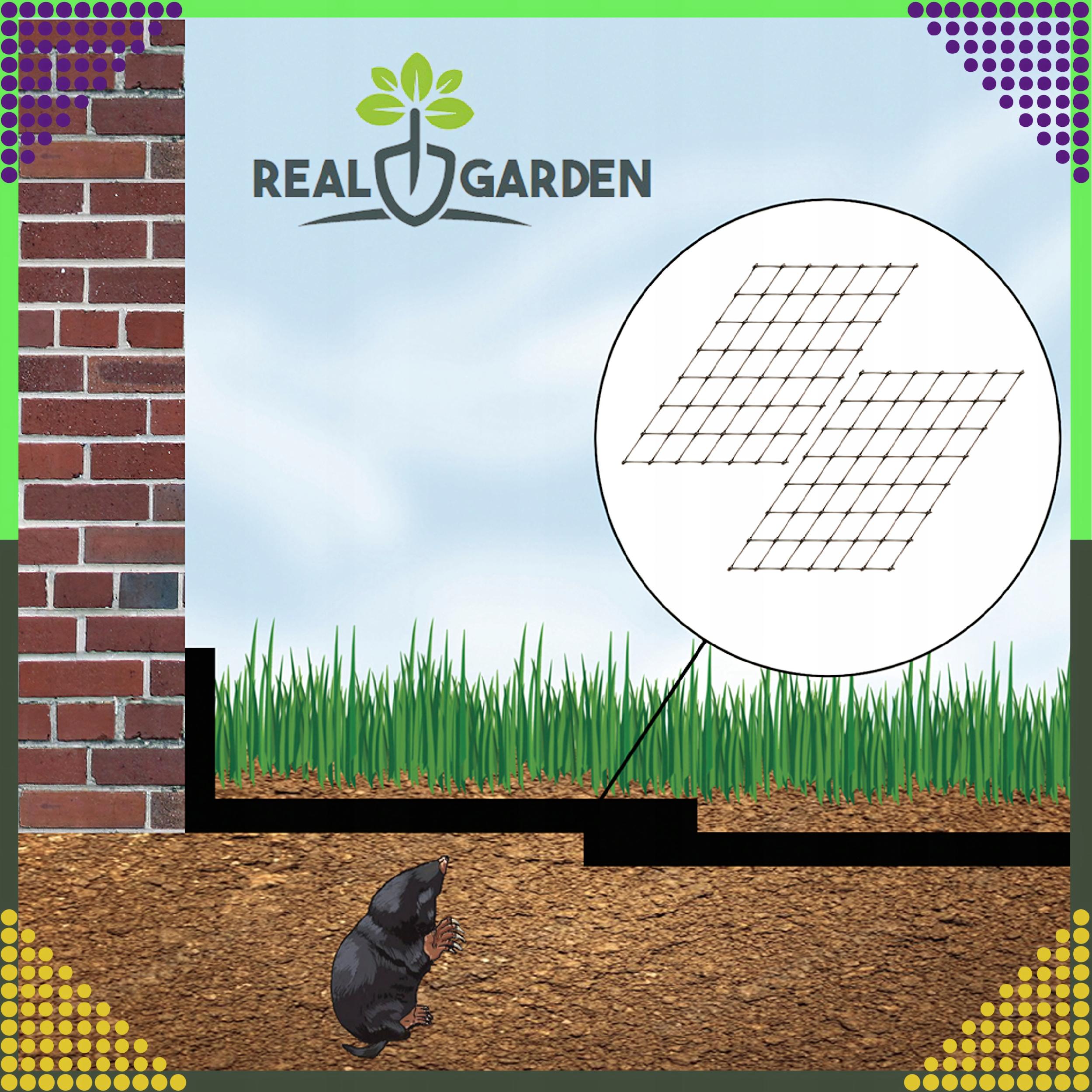 Siatkę należy rozłożyć od 5 do 10 cm pod ziemią w przypadku trawników oraz 30 cm w przypadku rabat kwiatowych.