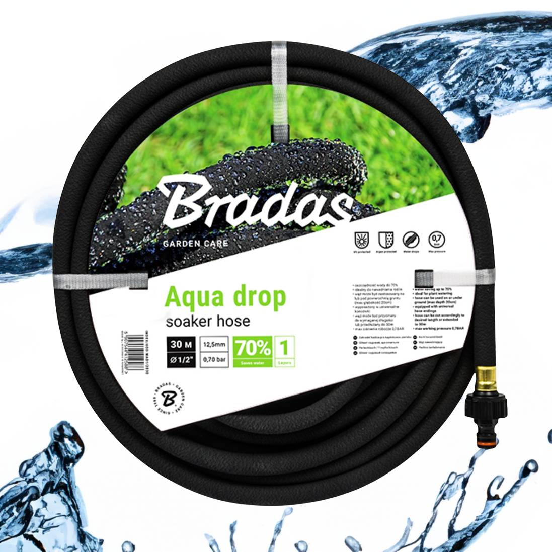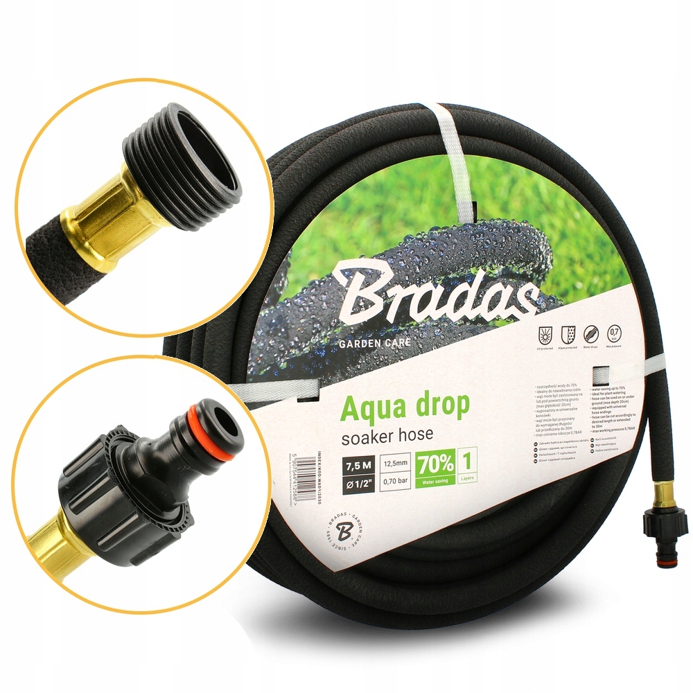 Elastyczny i odporny, wykonany w 100% z przetworzonej gumy wysokiej jakości, dzięki czemu równomiernie przepuszcza wodę na całej długości.